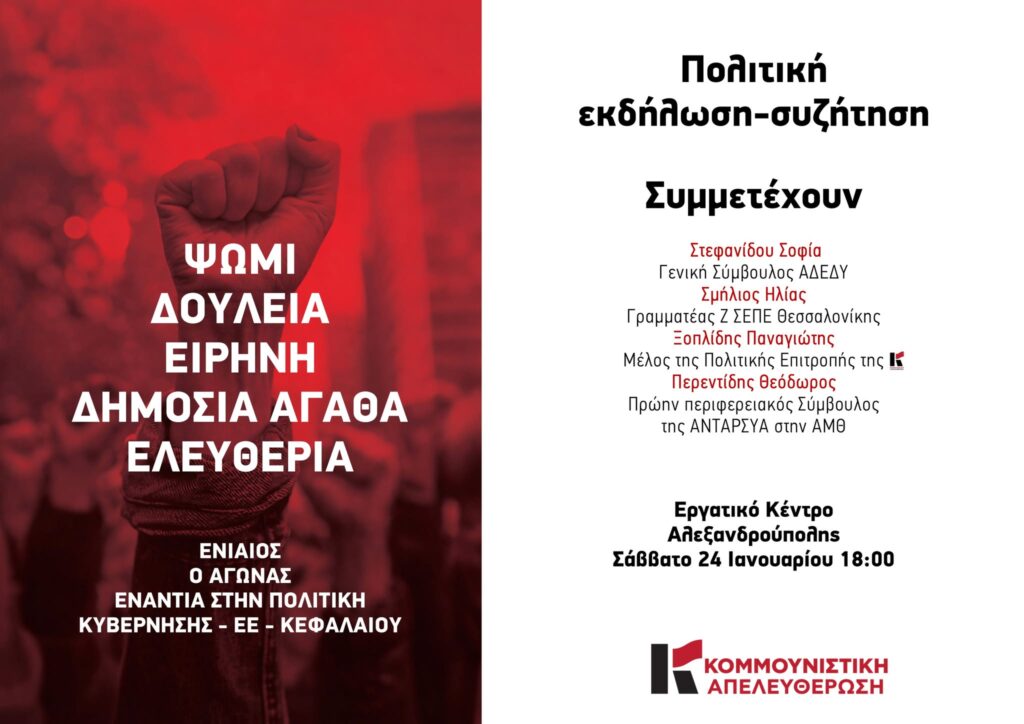 Πολιτική εκδήλωση στην Αλεξανδρούπολη: «Ψωμί, δουλειά, ειρήνη»