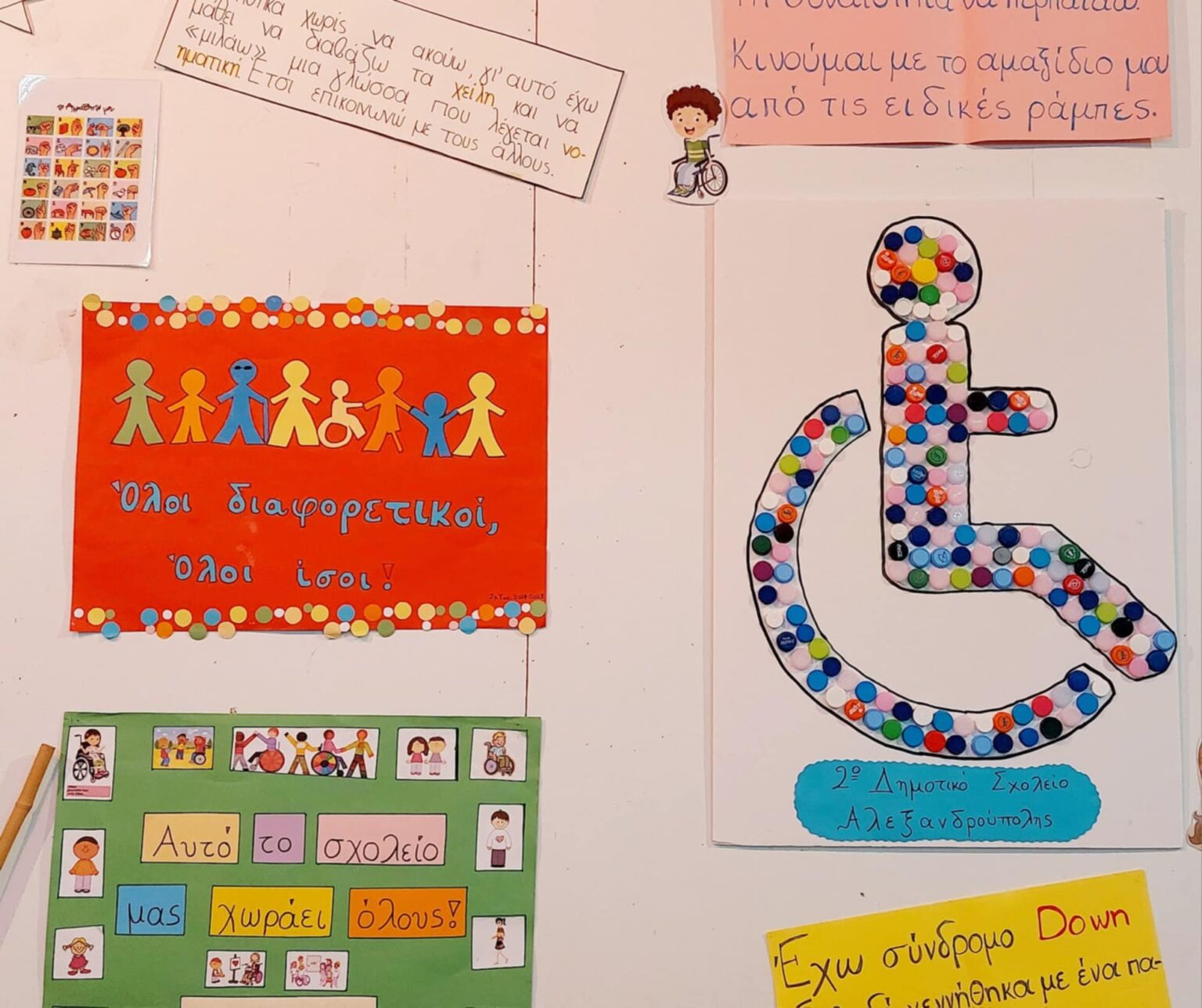 Σε ειδική εκδήλωση που πραγματοποιήθηκε σήμερα σε χώρο του 2ου δημοτικού και με αφορμή την Παγκόσμια Ημέρα Ατόμων με Αναπηρία που έχει οριστεί η 3η Δεκεμβρίου, οι μαθητές του σχολείου με καλεσμένους συμμαθητές τους και εκπαιδευτικούς του ειδικού δημοτικού σχολείου, τραγούδησαν για τη διαφορετικότητα και την ισότητα, έφτιαξαν χειροτεχνίες από ανακυκλώσιμα υλικά και παρέδωσαν το αμαξίδιο.