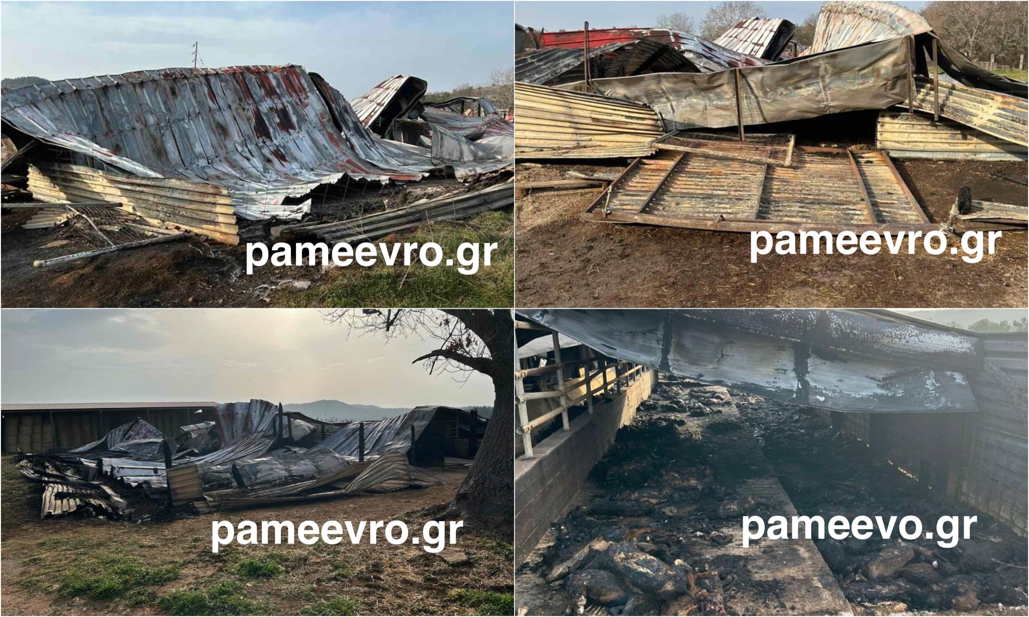 Μια ανείπωτη τραγωδία βίωσε κτηνοτρόφος που δραστηριοποιείται μεταξύ Πυλαίας και Μελίας στις Φέρες του Δήμου Αλεξανδρούπολης, καθώς μια ξαφνική πυρκαγιά αφάνισε το ποιμνιοστάσιό του μέσα σε λίγες ώρες.