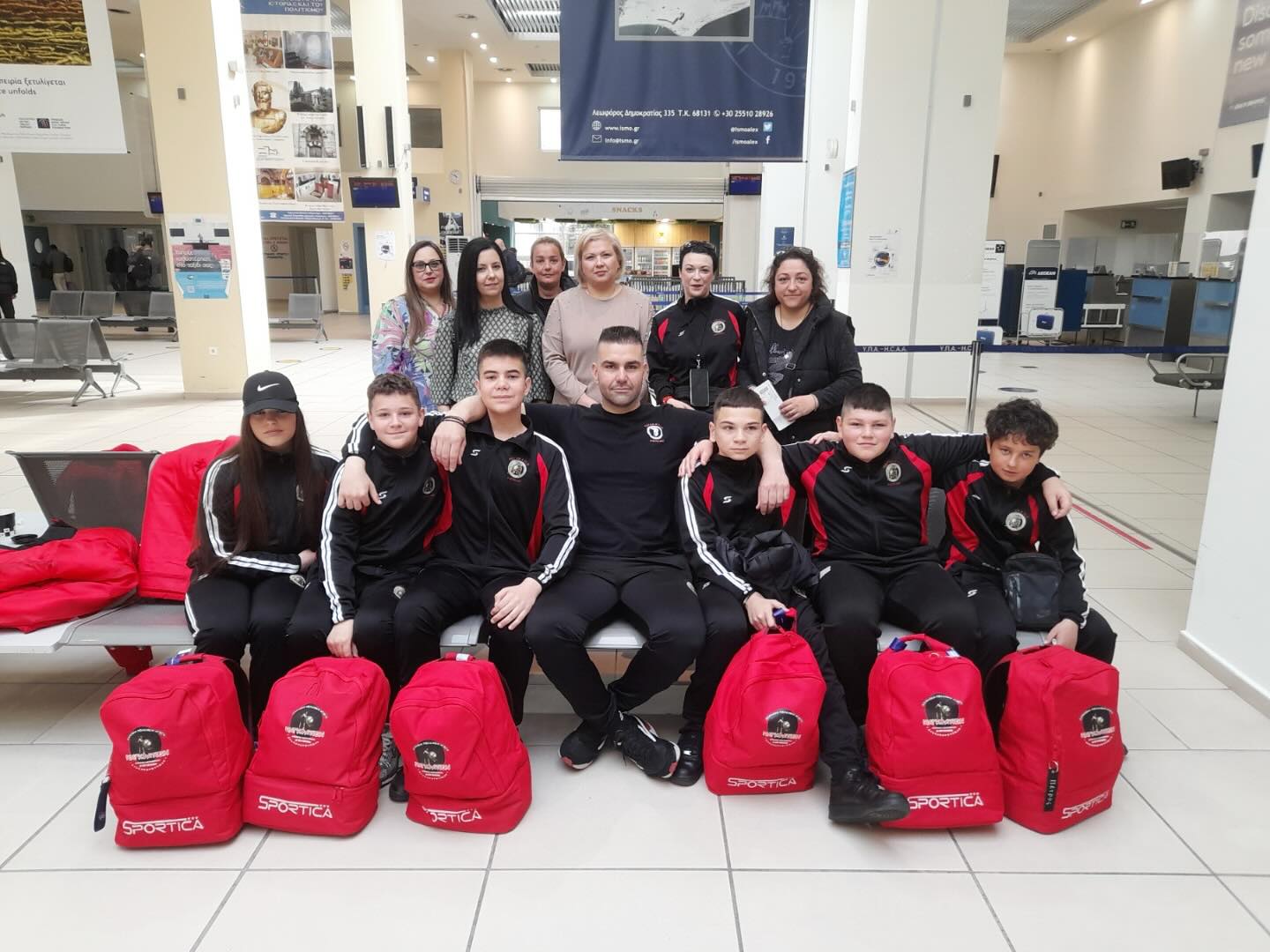 Με τις κόκκινες τσάντες στην πλάτη και τη φλόγα της αγωνιστικότητας στα μάτια, οι αθλητές και οι συνοδοί τους δηλώνουν έτοιμοι να δώσουν τον καλύτερό τους εαυτό, τιμώντας την πόλη και το άθλημα που υπηρετούν.