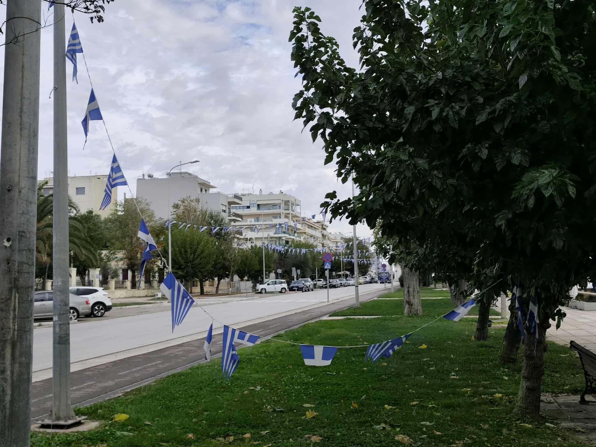 Κι ενώ η πόλη ετοιμάζεται να υποδεχθεί τη μαθητική και στρατιωτική παρέλαση, το στολίδι της προηγούμενης γιορτής (τα σημαιάκια και ορθά κοσμούν την παραλιακή λεωφόρο από την 14η Μαϊου) έχει ήδη μετατραπεί σε σκουπίδι.