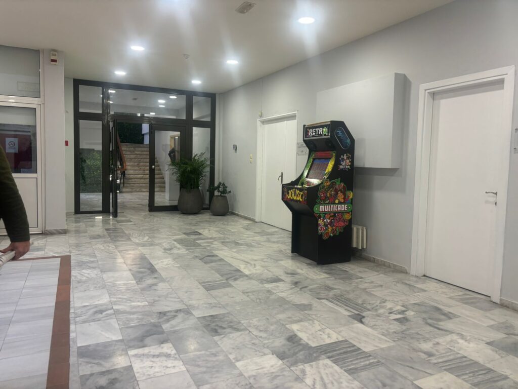 Η σκηνή συμπληρώνεται από arcade μηχάνημα «RETRO», όπου οι επισκέπτες μπορούν (γιατί όχι) ανάμεσα σε ραντεβού, βεβαιώσεις και πληρωμές, να παίξουν Pacman ή Space Invaders.