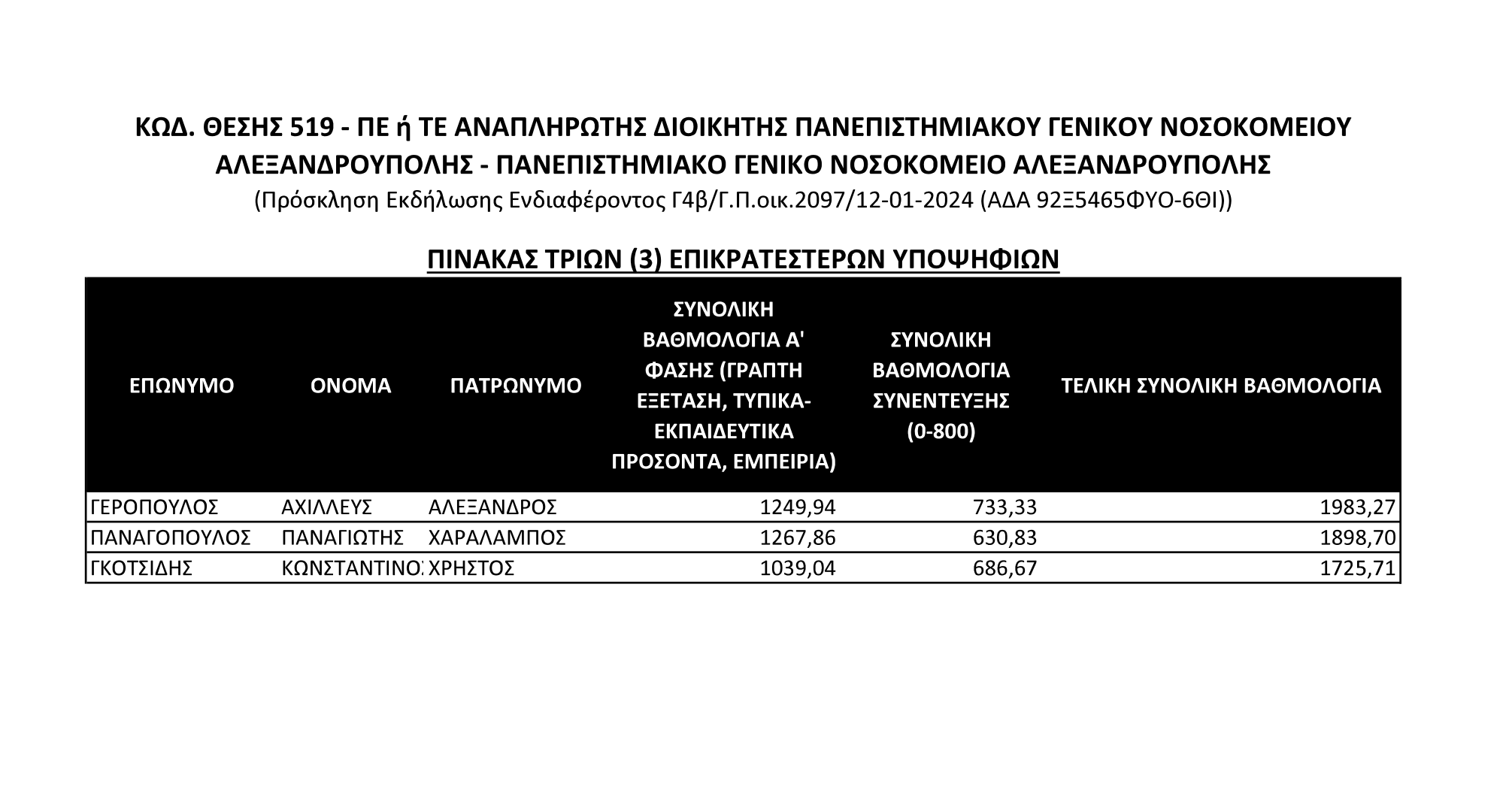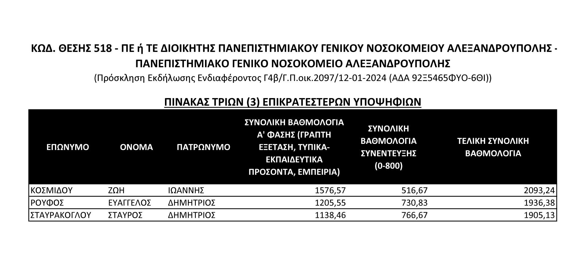 Επικρατέστεροι Υποψήφιοι για τη θέση του Διοικητή Νοσοκομείου Αλεξανδρούπολης – Δείτε την ανακοίνωση του ΑΣΕΠ