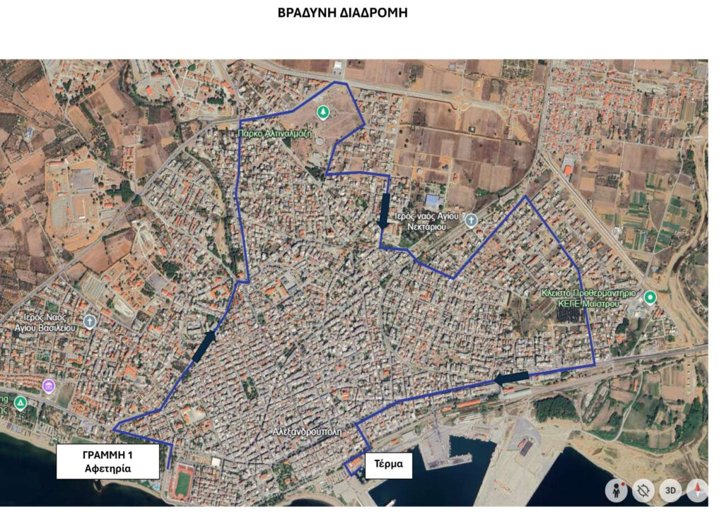 Ο Δήμος Αλεξανδρούπολης καλεί κατοίκους και επισκέπτες να αφήσουν τα αυτοκίνητα στο σπίτι και να επιλέξουν τη δημοτική συγκοινωνία για τις νυχτερινές τους εξόδους, χωρίς άγχος για το πάρκινγκ (που έτσι κι αλλιώς δε θα βρει κανείς) ή την επιστροφή.