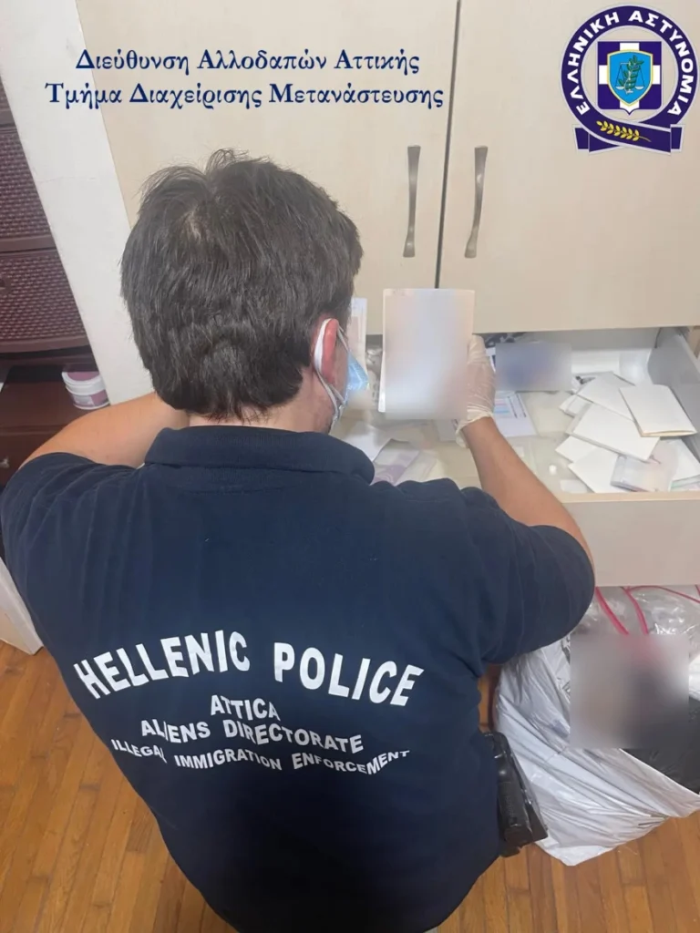 Κατασχέθηκαν συνολικά περισσότερα από 2.000 πλαστά έγγραφα, ανάμεσα στα οποία διαβατήρια, ταυτότητες, άδειες παραμονής και οδήγησης, καθώς και μεγάλος αριθμός εξαρτημάτων και πρώτων υλών για την παραγωγή νέων πλαστών εγγράφων – εξώφυλλα, εσωτερικές σελίδες, ζελατίνες ασφαλείας, φωτογραφίες και πλαστά στοιχεία.