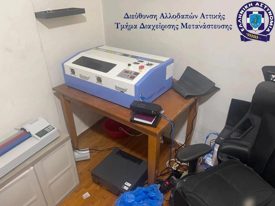 Κομβικό ρόλο στη δράση του κυκλώματος είχε το υπερσύγχρονο εργαστήριο κατάρτισης πλαστών εγγράφων, που εντοπίστηκε σε διαμέρισμα στον Άγιο Παντελεήμονα. Το εργαστήριο ήταν εξοπλισμένο με επαγγελματικά μηχανήματα εκτύπωσης, πλαστικοποίησης και άλλων εξειδικευμένων εργαλείων.
