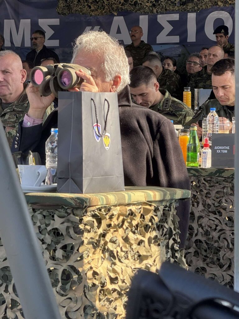 Όχι για κάποια πολιτική δήλωση ή τελετουργικό, αλλά για τον… τρόπο παρακολούθησης της άσκησης, με τα στρατιωτικά κιάλια “σε πλήρη δράση” και βλέμμα που σάρωνε το πεδίο βολής με ακρίβεια drone!