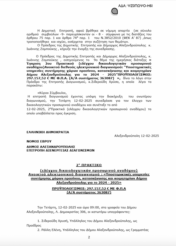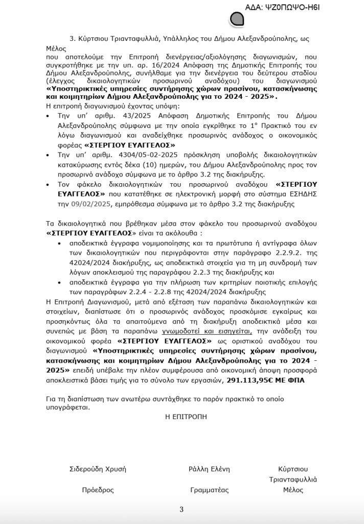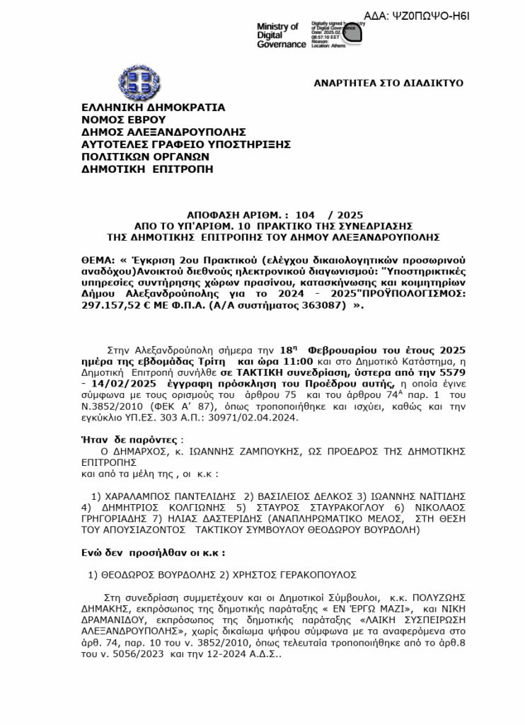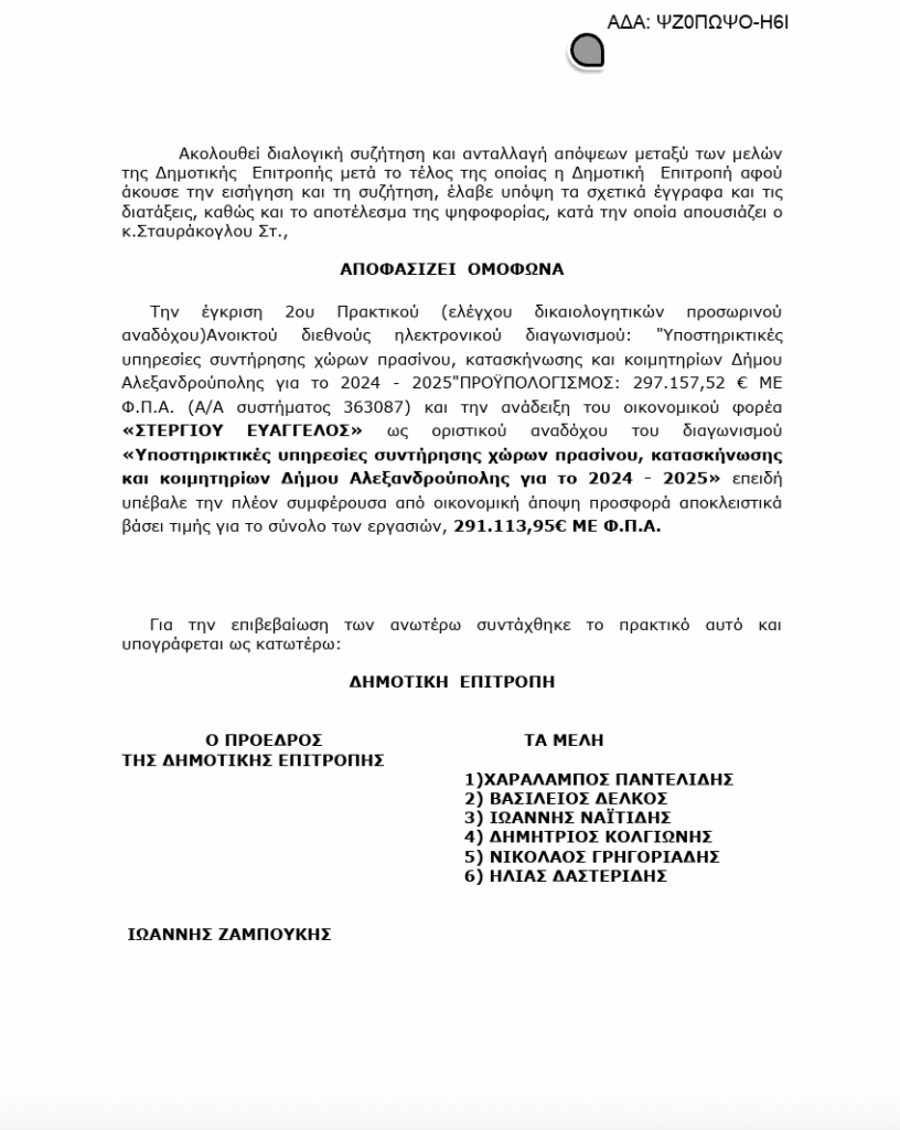 Όλα αυτά, ενώ ο Δήμος Αλεξανδρούπολης έχει εγκρίνει έργο σχεδόν 300.000 ευρώ για τη συντήρηση ακριβώς αυτών των χώρων. Ναι, καλά διαβάσατε: 291.113,95 ευρώ με ΦΠΑ, όπως ρητά αναφέρεται στα επίσημα έγγραφα