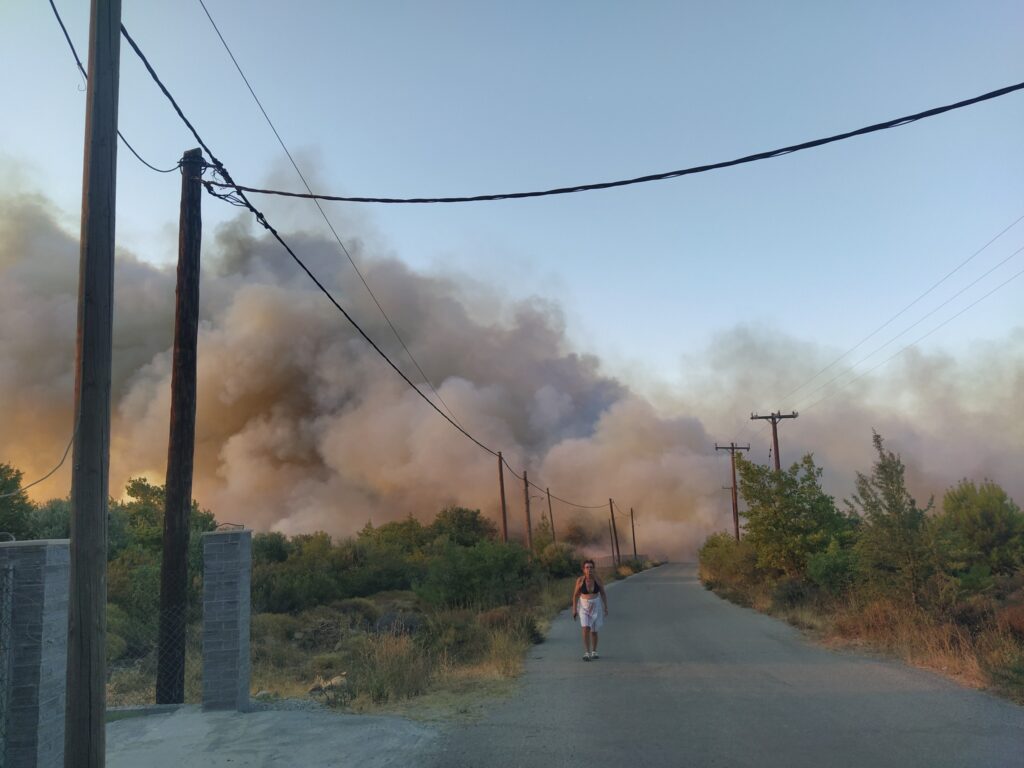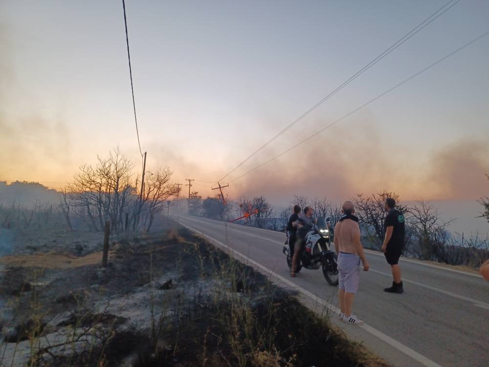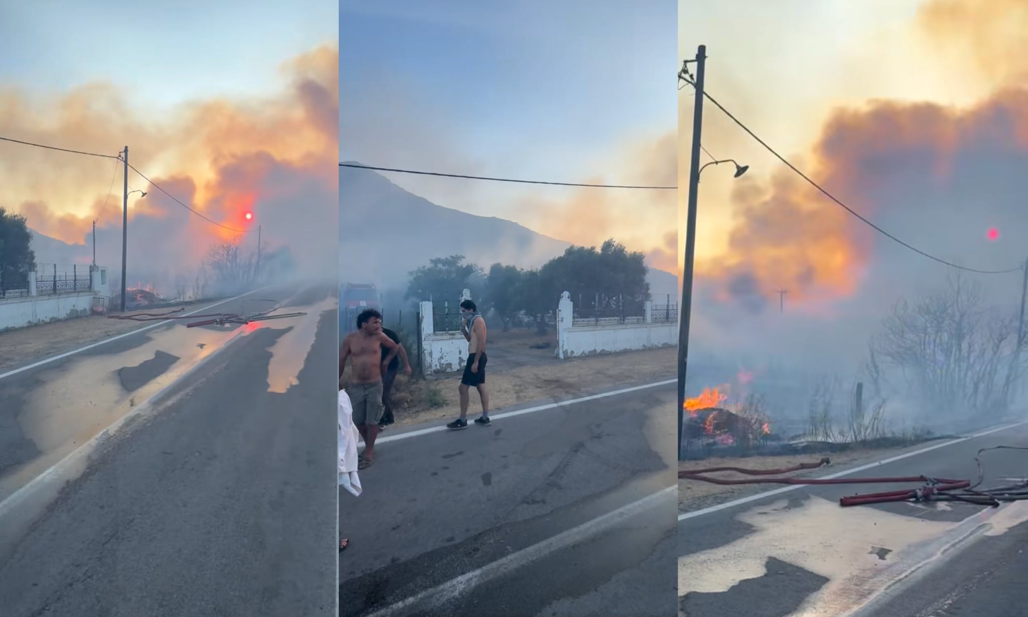 Σύμφωνα με τις πρώτες πληροφορίες, οι φλόγες κινούνται γρήγορα λόγω των ισχυρών ανέμων που πνέουν στο νησί, κάνοντας το έργο της κατάσβεσης εξαιρετικά δύσκολο.