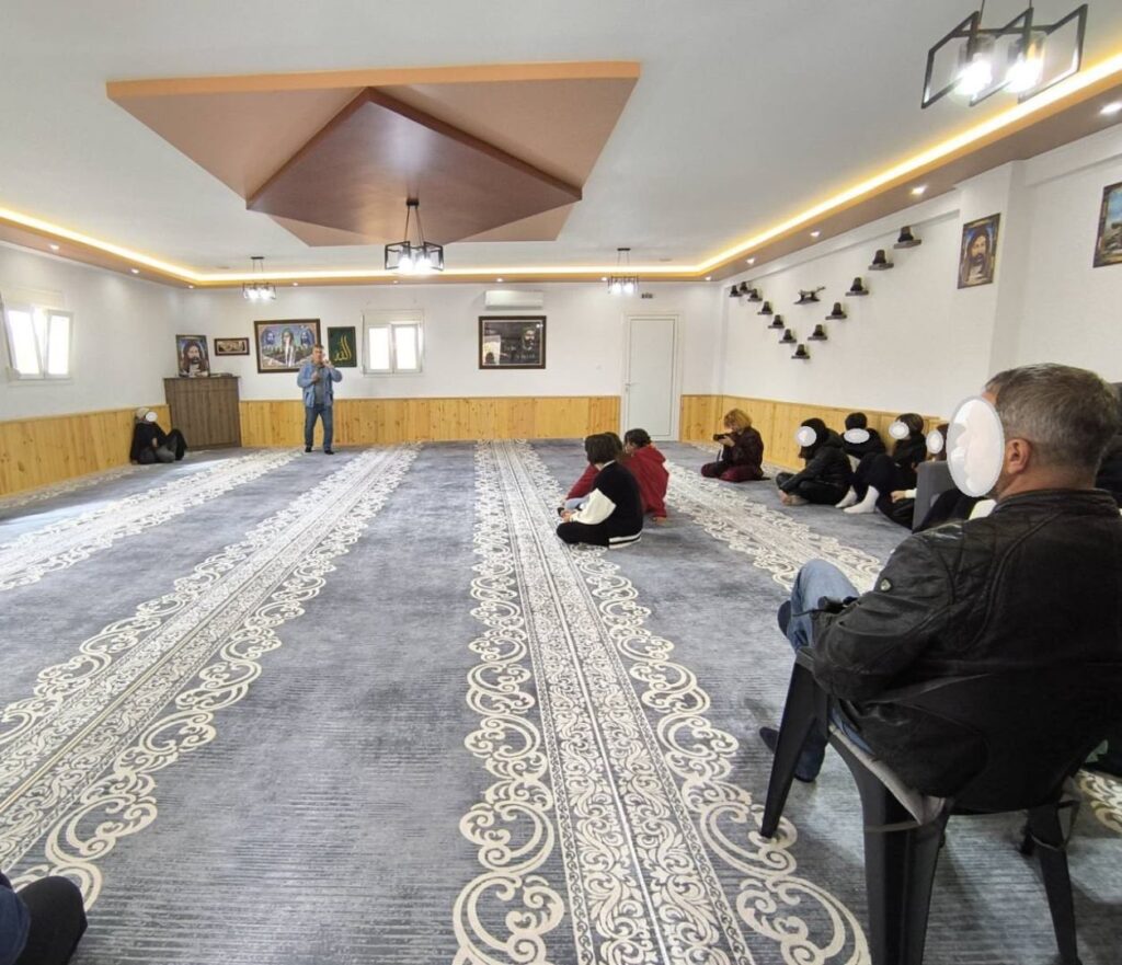 Εκεί, ξεναγήθηκαν στο ιερό Τέμενος από τον θεολόγο Ισλαμικής θρησκείας Μολλά Ιρφάν, και στο Τζεμ Εβί των Αλεβιτών μουσουλμάνων, με τη βοήθεια του δασκάλου του χωριού Μουμίν Πυρελή.