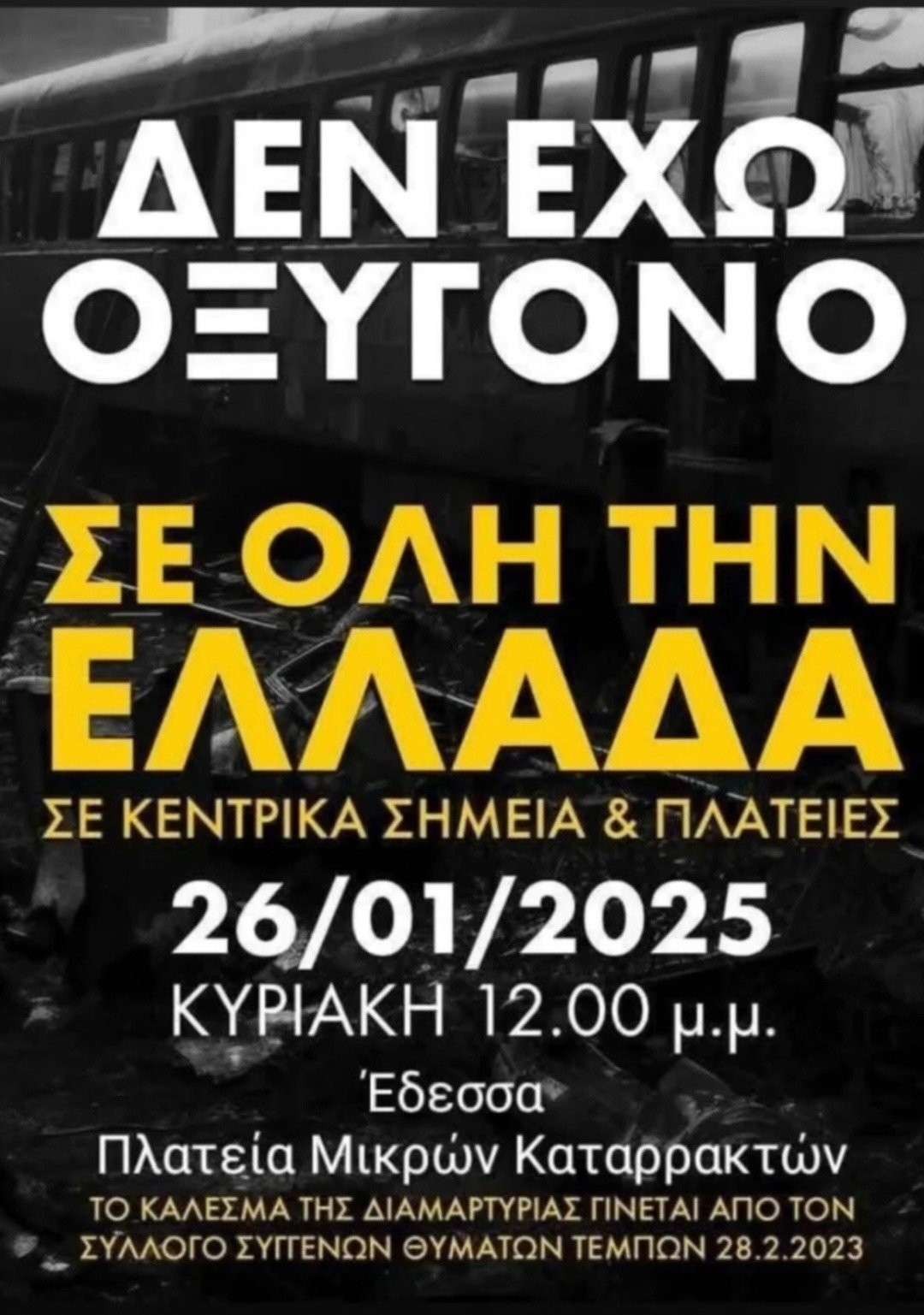 Κάλεσμα μαζικής συμμετοχής στις συγκεντρώσεις για το έγκλημα στα Τέμπη, την Κυριακή 26 Ιανουαρίου στις 12:00 το μεσημέρι μπροστά στο Δημαρχείο Αλεξανδρούπολης και στην κεντρική Πλατεία Ορεστιάδας, απευθύνουν σωματεία και φορείς του Έβρου.