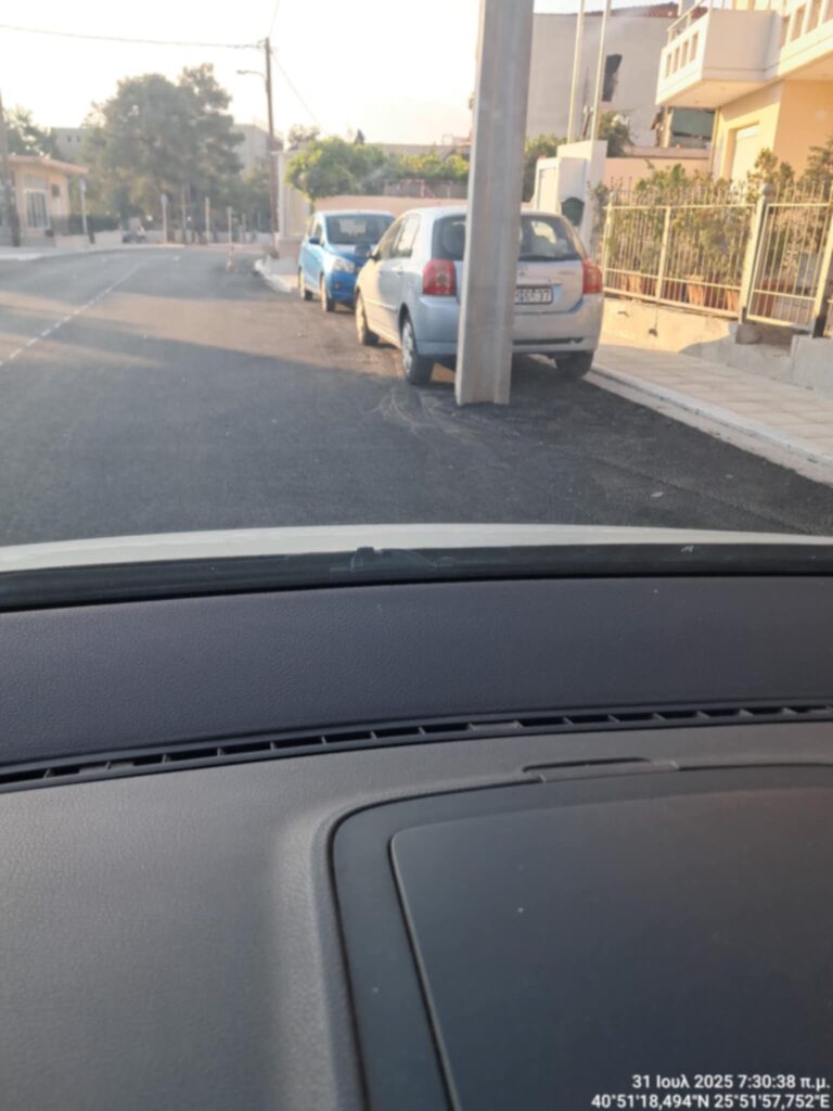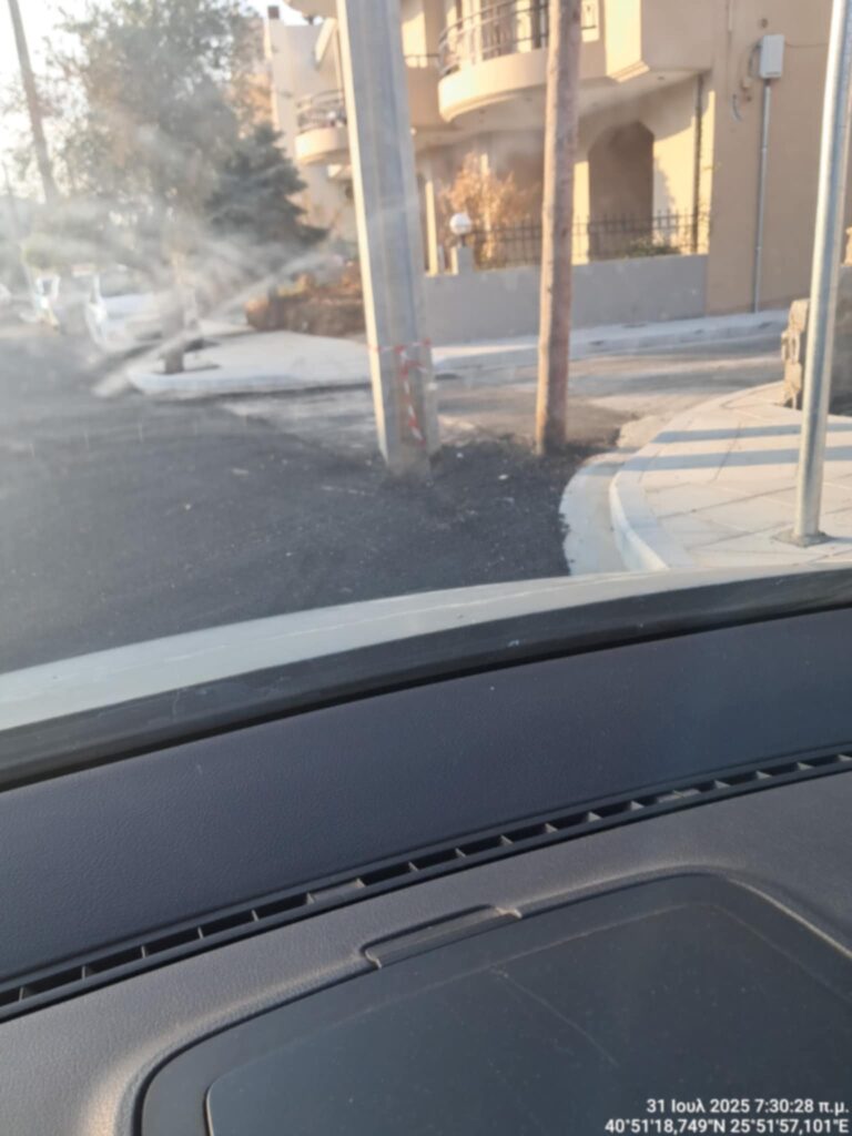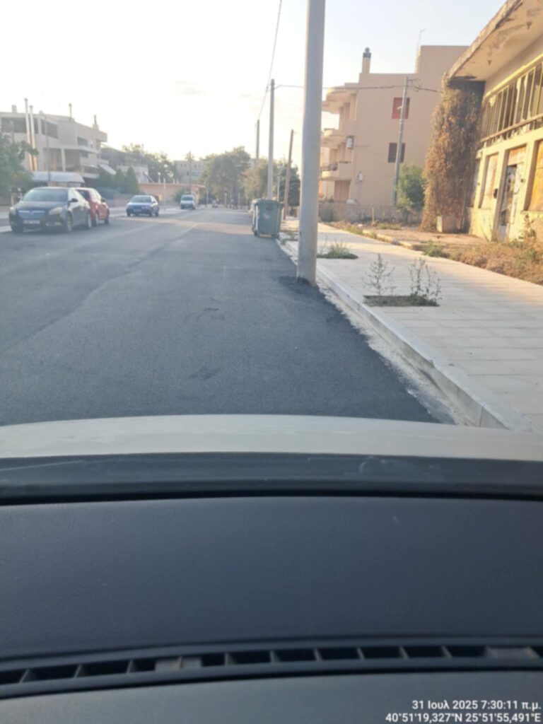 Στην οδό Αγίου Δημητρίου στην Αλεξανδρούπολη, συναντήσαμε το ανέλπιστο…ένας ολοκαίνουργιος δρόμος με φρέσκια άσφαλτο περιμετρικά από ξεχασμένες κολώνες της ΔΕΗ που έμειναν στη μέση του οδοστρώματος.