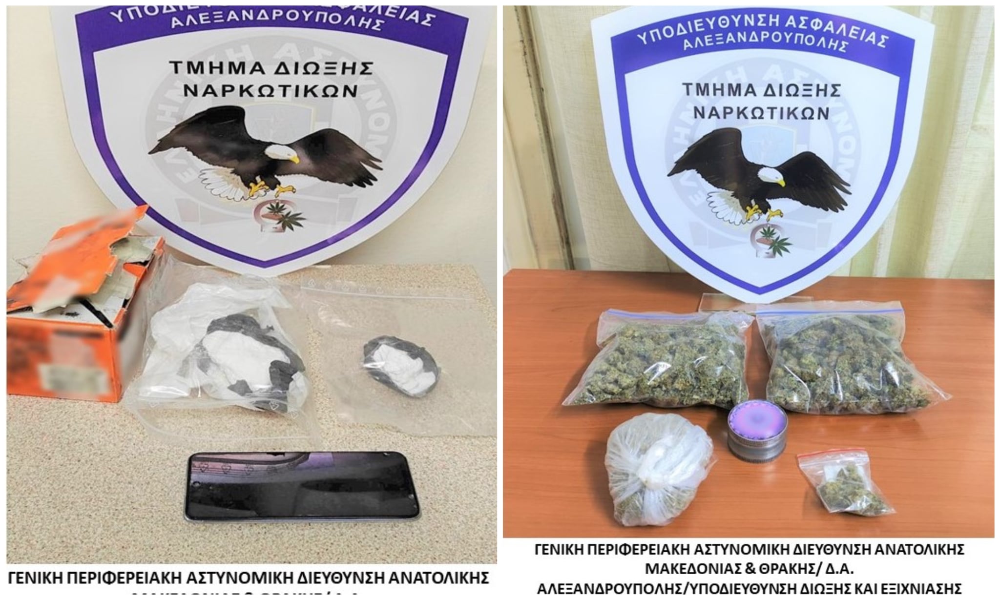 Δύο συλλήψεις για ναρκωτικά σημειώθηκαν στην Αλεξανδρούπολη, με τις αστυνομικές Αρχές να εξαρθρώνουν δύο ξεχωριστές υποθέσεις διακίνησης και κατοχής εξαρτησιογόνων ουσιών, σχηματίζοντας αντίστοιχες δικογραφίες σε βάρος ισάριθμων ημεδαπών.