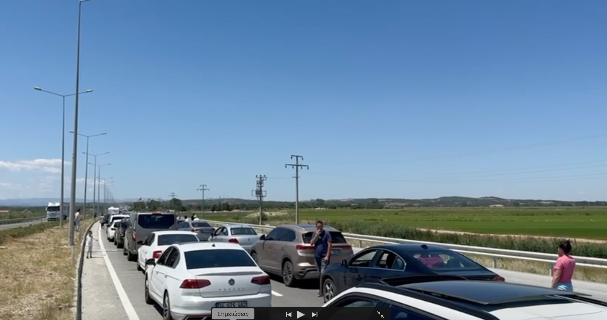 «Περιμένουμε μέσα στη ζέστη, με τα παιδιά να κλαίνε και το αυτοκίνητο στο ρελαντί για να δουλεύει το κλιματιστικό. Δεν υπάρχει ούτε ένα σημείο να πιεις λίγο νερό ή να προστατευθείς από τον ήλιο», ανέφερε στο pameevro.gr Γερμανός τουρίστας που ταξίδευε προς Τουρκία.