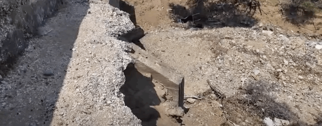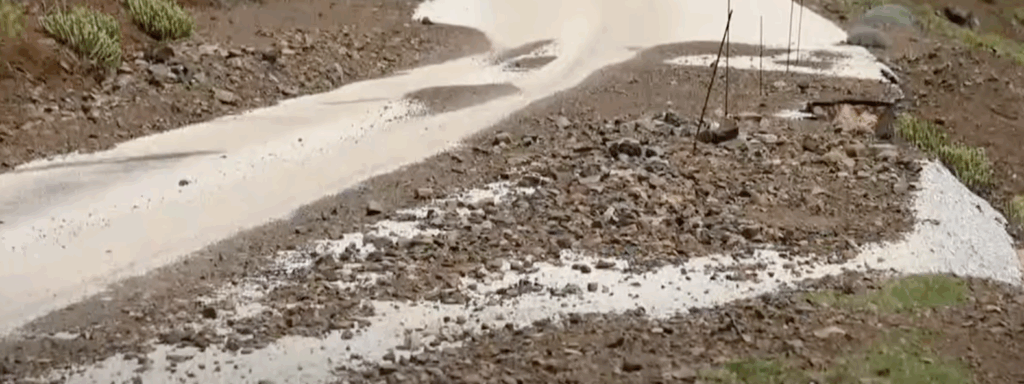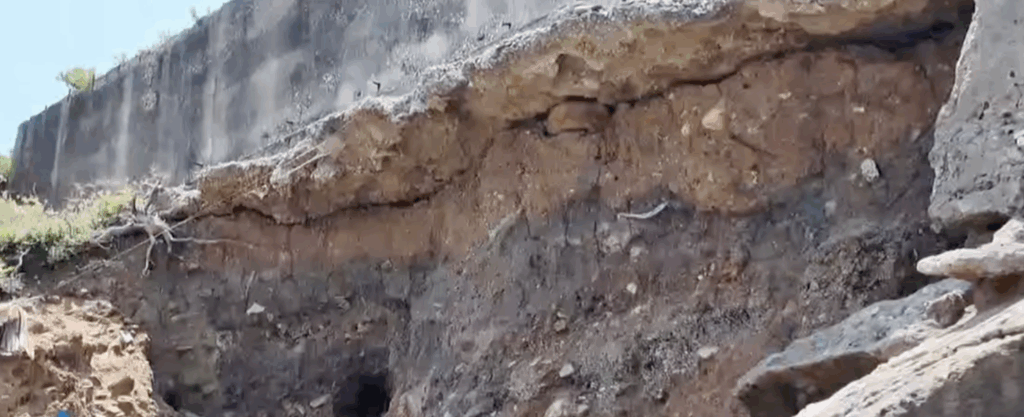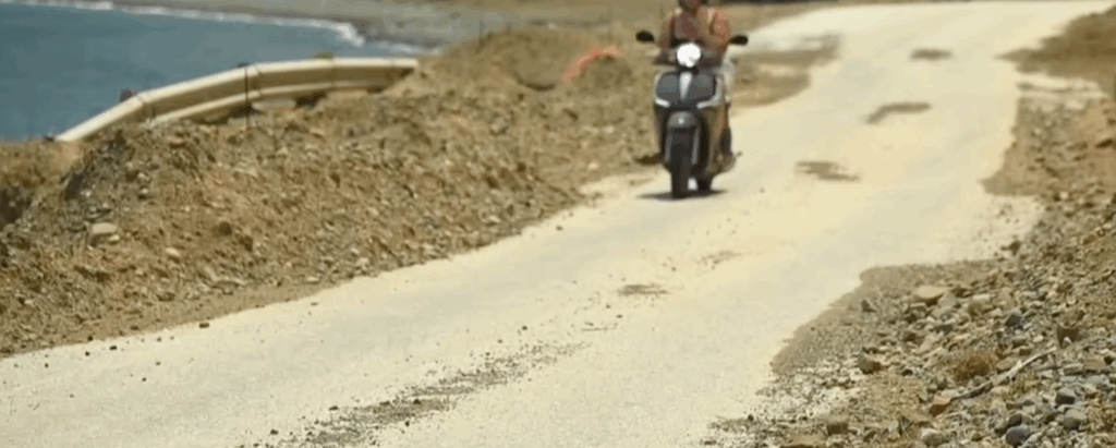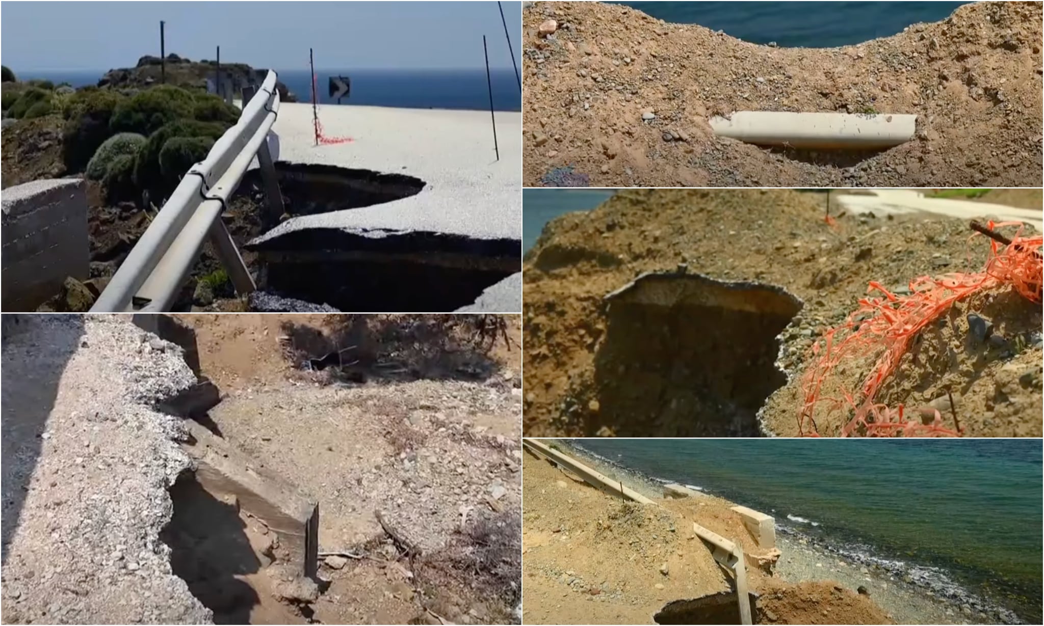 Οι εικόνες είναι ντοκουμέντα….Τρύπες που μπορούν να “καταπιούν” αυτοκίνητα. Στηθαία που κρέμονται πάνω από το κενό. Χώματα που έχουν φτάσει στη θάλασσα και πίσω από όλα αυτά, ένα νησί που προσπαθεί να κρατηθεί ζωντανό.