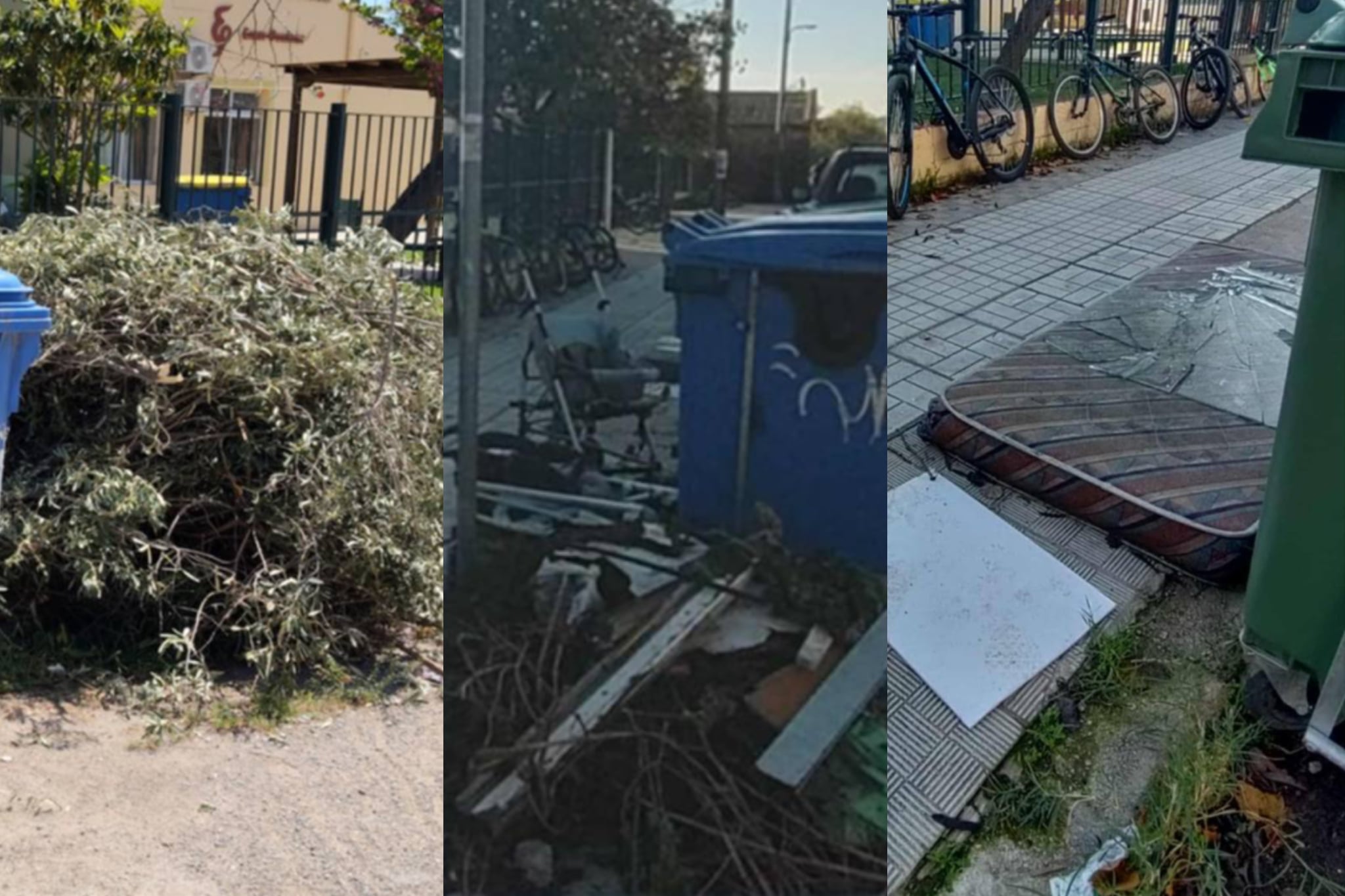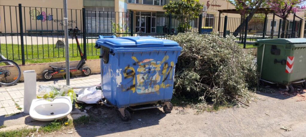 Οι εικόνες που αντικρίζουν καθημερινά οι μαθητές είναι τουλάχιστον εξευτελιστικές. Ενώ οι κάδοι μπορεί να φαίνονται άδειοι ή τουλάχιστον όχι ξεχειλισμένοι, ο χαμός γίνεται ακριβώς δίπλα τους. Πεταμένα αντικείμενα κάθε είδους, από στρώματα και παλιά έπιπλα μέχρι κλαδιά δέντρων, συνθέτουν ένα σκηνικό που θυμίζει περισσότερο παράνομη χωματερή παρά γειτονιά που φιλοξενεί ένα σχολείο. Αυτό αναδεικνύει ένα βαθύτερο πρόβλημα, την ασυνειδησία ορισμένων πολιτών που επιλέγουν να απορρίψουν τα ογκώδη αντικείμενα ανεξέλεγκτα, αντί να ακολουθήσουν τις προβλεπόμενες διαδικασίες.