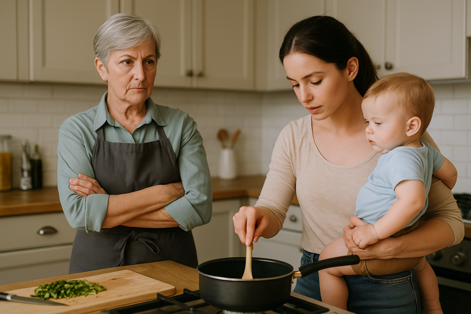 – «Καλά, δεν έχεις κάνει ακόμα σούπα; Το παιδί πρέπει να τρώει ζεστά, όχι αυτά τα… μπολ με βρώμη.»