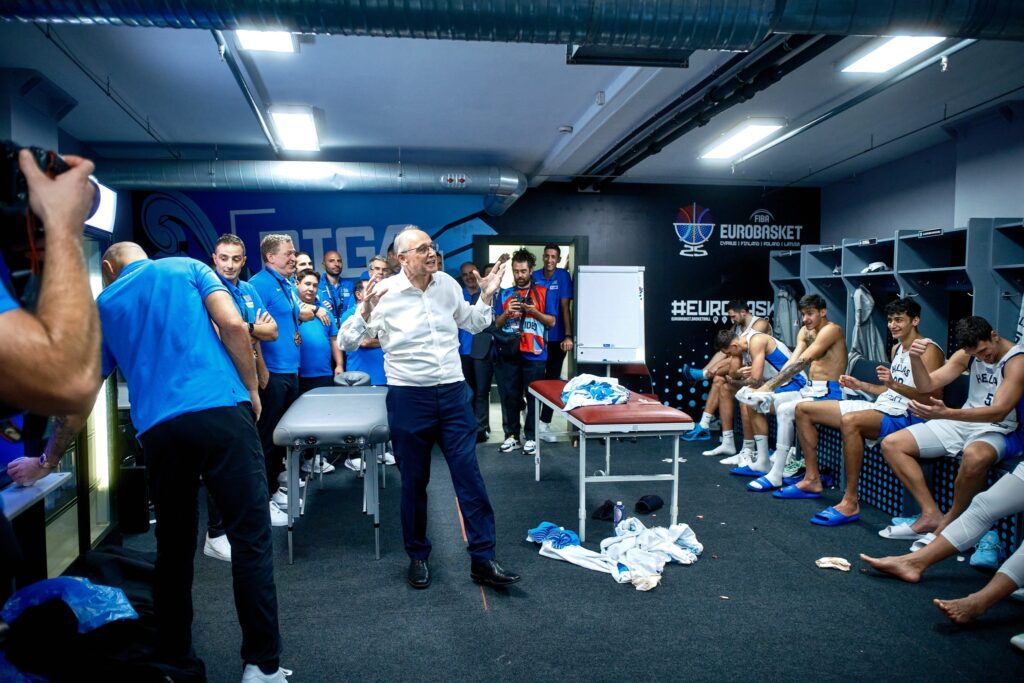Τα λόγια του «Kill Bill» πρόλαβαν να συγκινήσουν για λίγα μόνο δευτερόλεπτα, πριν οι παίκτες του τον «πνίξουν» στις σαμπάνιες, αποθεώνοντάς τον ως ηγέτη μιας ομάδας που ξαναγύρισε την Ελλάδα στο βάθρο της Ευρώπης.