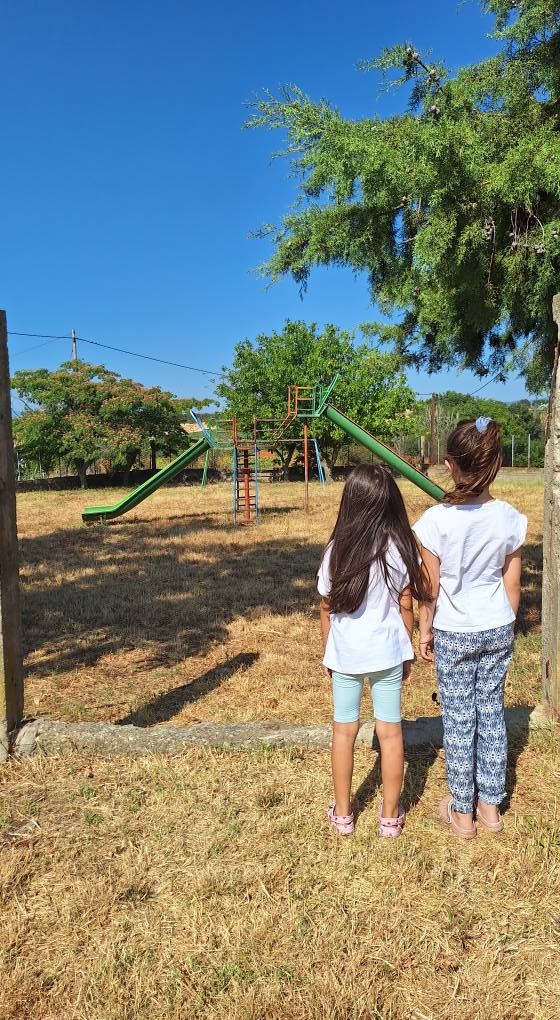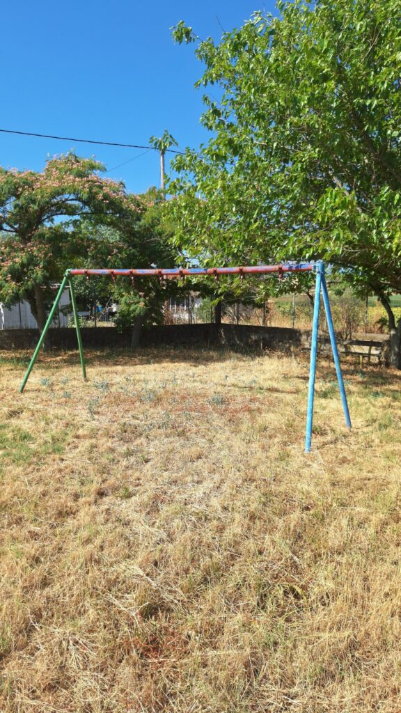 Μια παιδική χαρά βγαλμένη από άλλες εποχές, κούνιες χωρίς καθίσματα και μια τσουλήθρα “φαγωμένη” από τον ήλιο και τον χρόνο. Ξερό χορτάρι, λίγη σκιά, σιωπή. Αυτές είναι οι εικόνες από την παιδική χαρά στη Χελιδώνα του Έβρου.