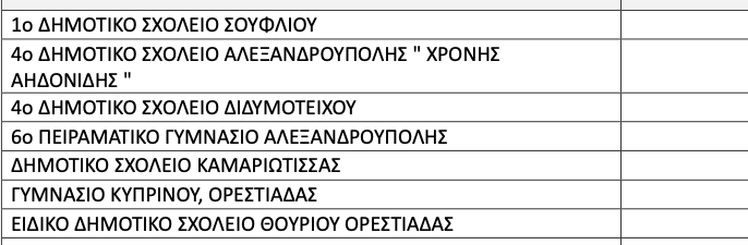 Ποια σχολεία του Έβρου συμμετέχουν: